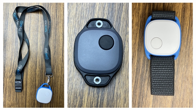タグ写真(左からネックストラップタグ、物体検知用タグ、リストバンドタグ)