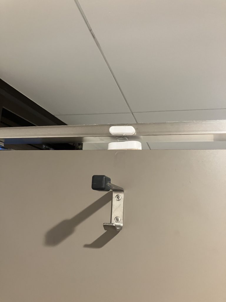 - 個室のドア上部にドアセンサを設置。開閉時に信号が送出されるようにする。