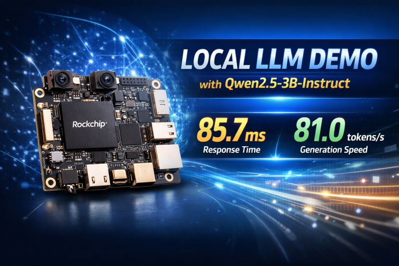 今回は、FireflyのRK182X Development Kit上でQwen2.5-3B-InstructのローカルLLMデモを動作させた結果をご紹介しました。